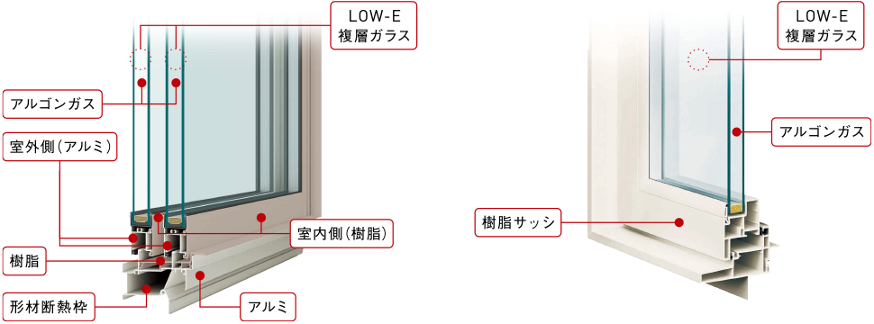 ※斷熱性能を確保するため、サッシ種類?サイズが限定されます。