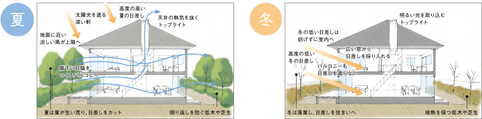 日本の知恵を活かし、日差しのコントロールと風(fēng)通しに配慮します。
