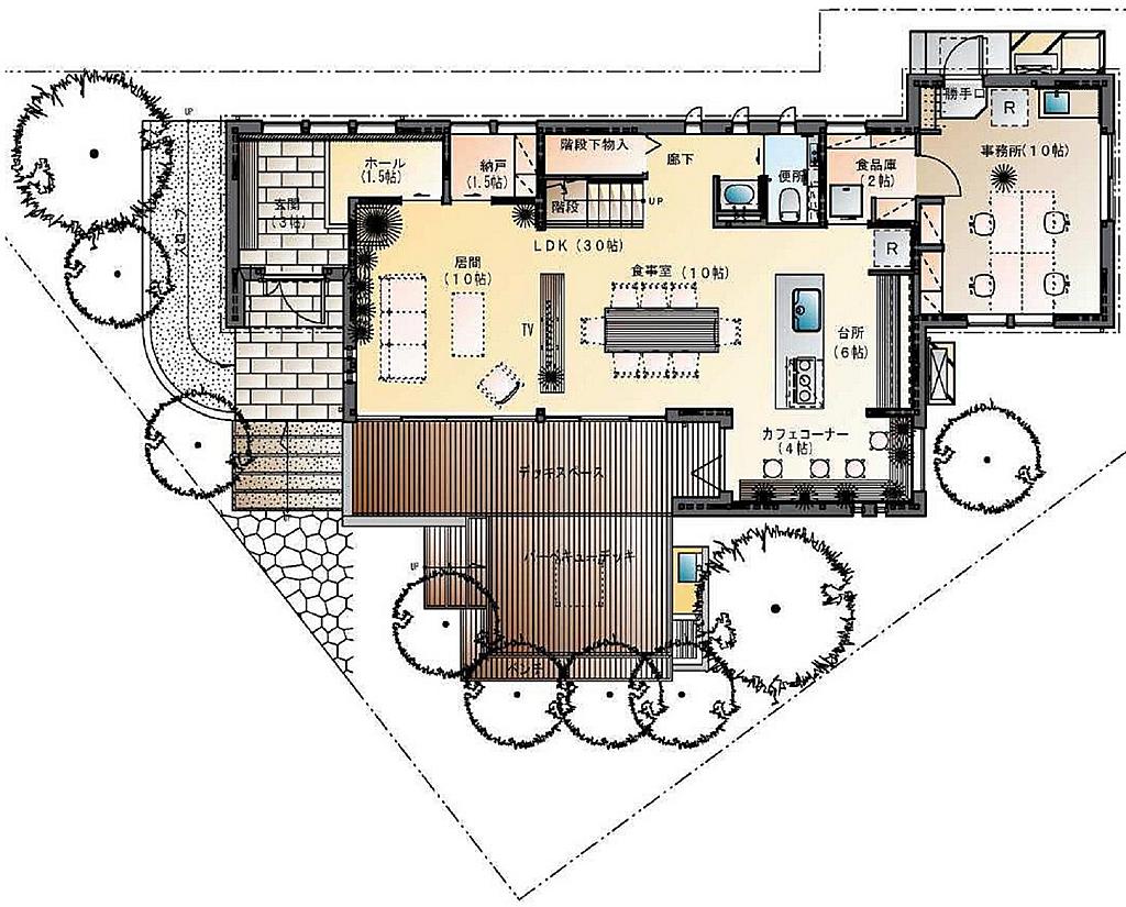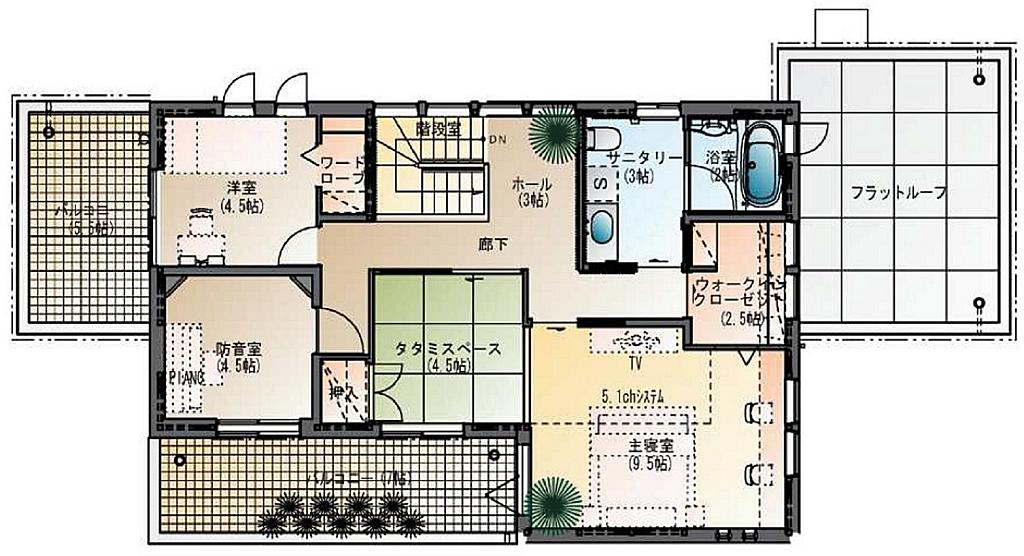 | 見どころ | 明るいリビング|リビング大開口|収納提案|家事動線に工夫がある|靜音室(やすらぐ家)|外構(庭)に工夫がある|広いバルコニー?デッキ |
