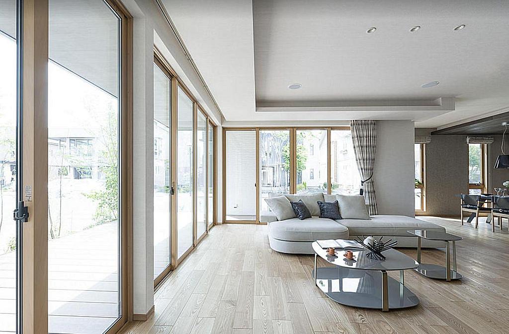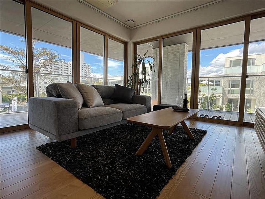 天井高2m72cmと大開口の窓で、心地よい光と風を招く大空間をご體感いただけます。深い庇(ひさし)のテラス?バルコニーは、內と外のつながりを演出。インテリアはナチュラル素材を採用した上質な優しい空間。
