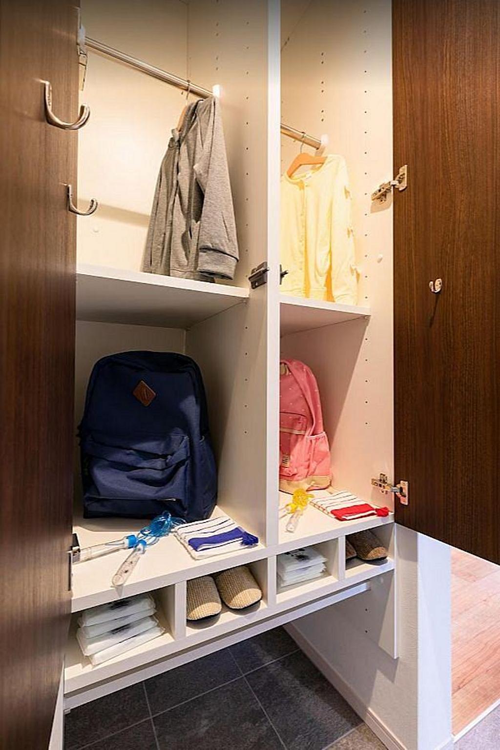 『自分専用片付けロッカー』個人の荷物を置ける?yún)Ъ{を玄関に配置。毎日使う小物や上著を収納できます。
