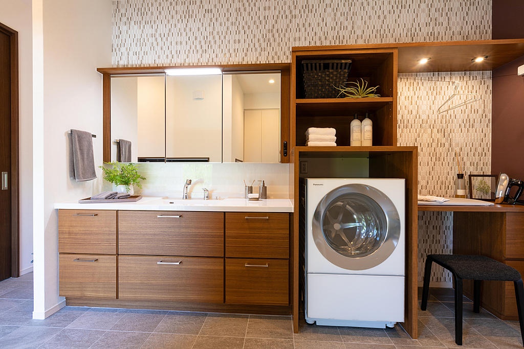 キッチンとバスルームの間にあるユーティリティスペース。洗濯からアイロンまでできる便利スペースです。
