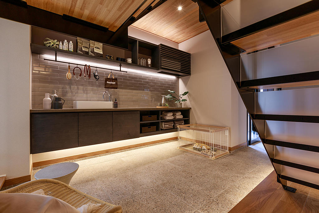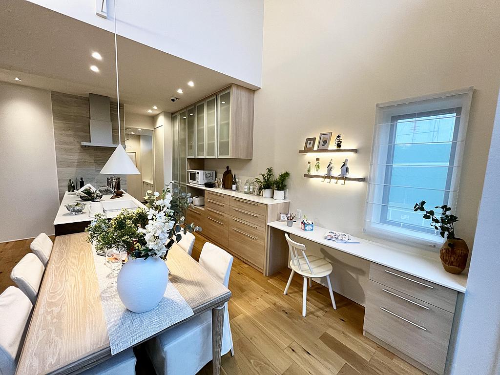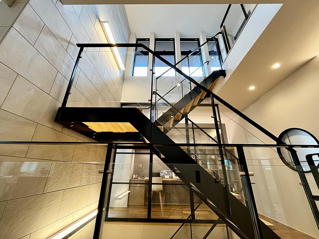 重量鉄骨3階建て、1階には親世帯、2階?3階には子世帯を設けた二世帯住宅をご體感いただけます。1階にはドッグスペース、2階にはヨガスペース、3階にはテレワークスペースと靜音室を設置。2階のリビングでは鉄骨造による吹抜けと大開口を活かしたAirGranLivingも見どころです。