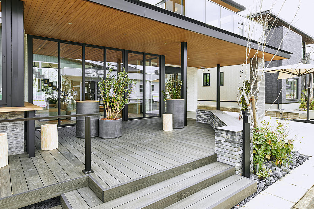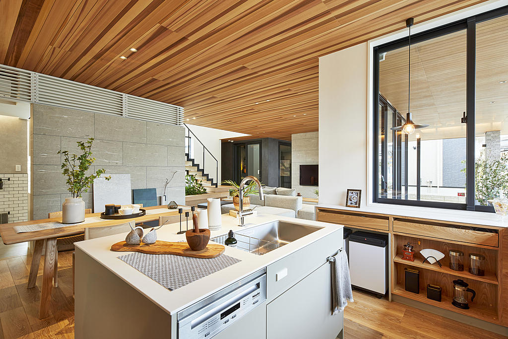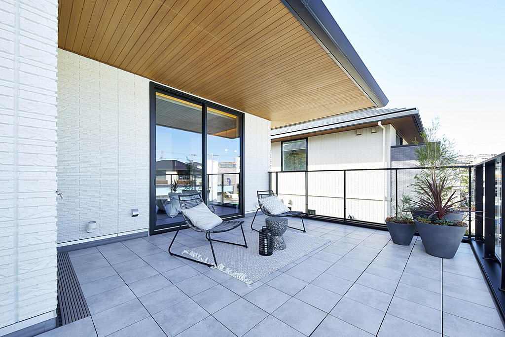 さらに、LDKの外に大きなカフェテラスを設けることで內と外のつながりを感じさせます。