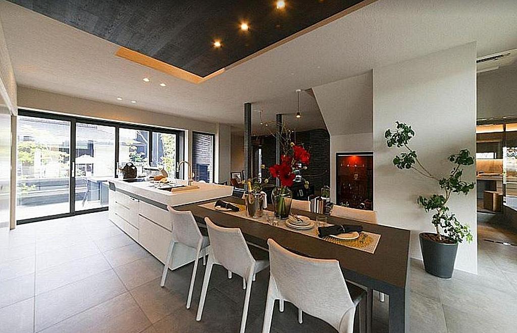 また床高を下げたロースタイルリビングや、アクセントを施した折下げ天井など、空間に変化を付け面白みを感じる演出をしております。