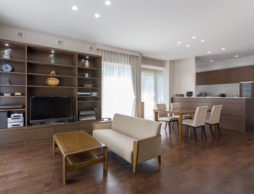 以前のお住まいのマンションに伺い、お手持ちの家具のサイズを測(cè)って寫真に撮り、蔵書の量も把握して、すっきりと美しく収まるプランをご提案しました。また、防音室仕様のピアノ教室をつくるに當(dāng)たっては、総合技術(shù)研究所から音響の専門家に來(lái)てもらい、専門的な説明をしてもらいました。スタディースペースを設(shè)けたリビングにいつもご家族が集まり、自然に會(huì)話が弾むお住まいになり、大変ご満足いただいています。