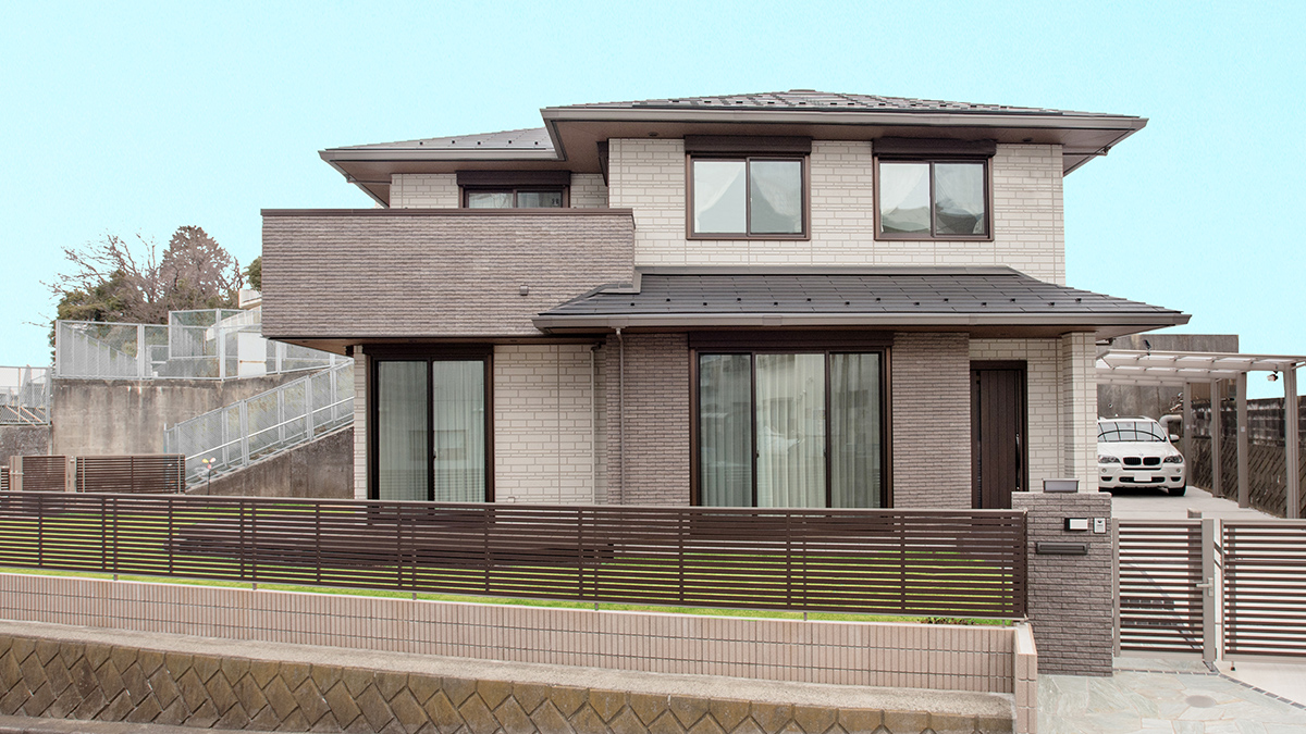 道路からの視線をフェンスで遮り、芝生の庭に囲まれてお子さま達と楽しく開放的に過ごせる住まいを実現されたSさま。高い天井を生かした伸びやかなLDKにはお子さまの勉強スペースを造作。さらに書斎スペースの扉を開けると和室からキッチンまで見通せるようにするなど、共働きでご多忙な中でもご家族の一體感を大事にした暮らしをされています。
