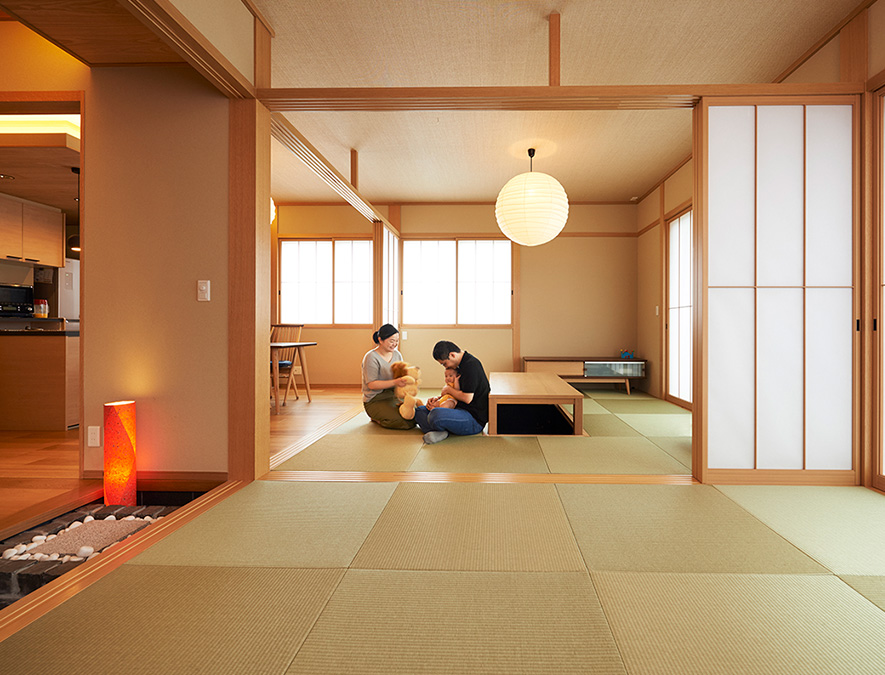 和のテイストが好きだったので、「xevoΣ(ジーヴォシグマ)和暮らし」の開放的に使える洗練された空間に魅力を感じました。人をたくさん招きたかったので、障子の開閉で「続き間」をつくることができるなど、間取りが柔軟に使えるのも気に入りました。提案されたプランを見て、「私たちの想いをこんなに汲み取ってもらえるとはスゴイ!」と感動し、一気に家を建てたい気持ちが高まりました。