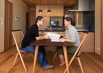 Cさまご夫妻は和のテイストがお好みでしたので、和風の住宅展示場にご案內し、鉄骨造でも外観、內観とも完成度の高い和の住まいが実現できることをお伝えしました。併せて構造、性能、工程などもわかりやすくご説明し、『xevoΣ』の魅力をご理解いただきました。また、全てお任せくださったご信頼にお応えできるよう、土地購入の交渉などもサポート。ご予算の範囲で工夫してご要望を葉えました。