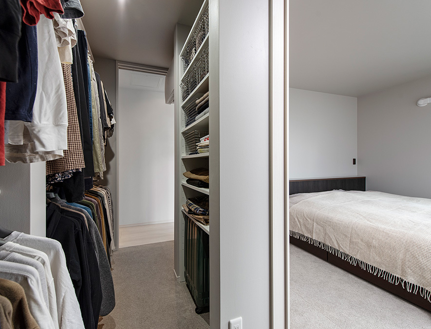 寢室のウォークインクローゼットは廊下からも出入りできて便利