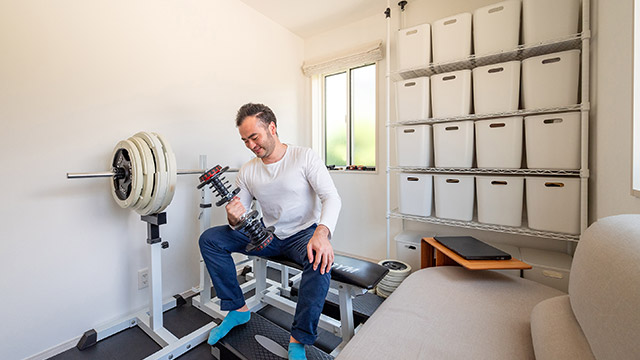 重いベンチプレスが置けるよう、床を補強したトレーニングルーム。筋トレが趣味のIさまは、休日には必ずここでトレーニングに勵まれているそうです。「リモートワーク時の運動不足の解消にもなっています」とIさま。