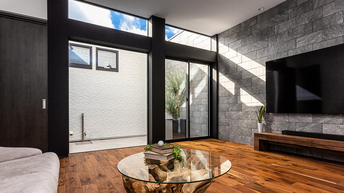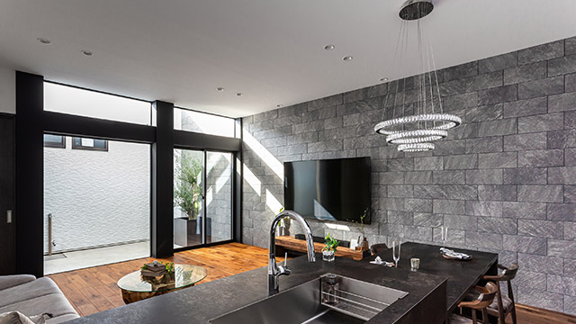 素材感が華やかな、中庭に連続するLDK