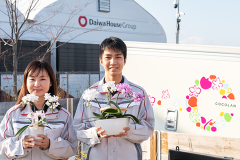 2021年4月、大和ハウスの特例子會社として誕生した大和ハウスブルーム。ミニ胡蝶蘭の栽培を通じて、障がい者もご高齢者も、地域一體となって共に輝ける拠點を目指して、栽培施設“COCOLANハウス”ができました。そこでは蘭の栽培を通じて紡がれる個々の物語があります。10代から70代までの多様な思考が集結し、より良い働き方を見出し、作り手の蘭に込めた想いが伝心する場所。贈る人も受け取る人も笑顔になる胡蝶蘭、多様な栽培者一人一人が笑顔で送り出す日常が、ここにはあります。