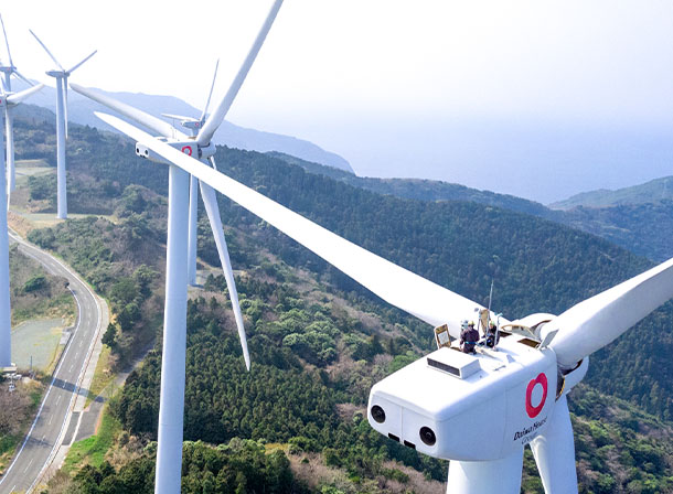 深刻化する環境問題に著目し、21世紀は「風?太陽?水」の事業化が必要と判斷。風力発電事業を開始し、その後、太陽光発電にも事業を拡大。