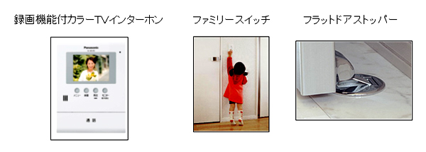 3.入居者が安全・安心・快適に暮らせる魅力ある仕様 防犯性に配慮して、特に女性入居者から要望の高いインターホンについては、視認性の高いカラーモニター方式の録画機能付きのタイプを標準設定としました。これにより、留守中の来訪者もしっかり確認できます。 気になる共用階段の段板には、昇降音を低減したPC(プレキャストコンクリート)板を採用し、さらにゴムマットを敷き込むことで、靴音を従来と比較して半分程度に軽減しました(当社比)。 また、当社独自のユニバーサルデザインの考え方を核としたデザインコンセプトである「フレンドリーデザイン」を採用し、小さな子どもから大人までみんなが使いやすいようスイッチの高さも床から110cmに設定。室内ドアのストッパーにも突起がない安全な「フラットドア ストッパー」を採用しています。