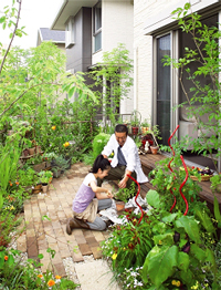 「エディブルガーデン」とは、食べることを楽しむ“おいしい庭”(家庭菜園)と緑がある暮らしのことです。従來の「見て楽しむ」庭に、「自分で野菜を育てて楽しむ」という考え方を取り入れました。野菜を育て、食べることを通して學び、またエコロジーな感覚を自然と身につけることができる、新しい庭づくりの提案です。