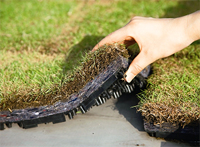 成長の遅い省管理型の芝生と保水マットを使用し、水やり・芝刈りなどの作業を低減します。