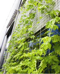 ツル性の植物を植えることで、夏場の日差しや道路側からの視線を遮ります。
