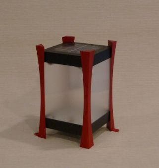 寄贈する灯篭は、同イベント用に製作したもの。太陽光発電・蓄電池・LED照明を搭載。平城宮跡にある「朱雀門」をモチーフに、景観とマッチしたデザインを採用。 サイズは高さ31.5cm×幅20 cm。明るさは0.5W程度。 |