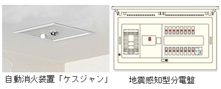 火災発生時に自動で初期消火をする自動消火装置「ケスジャン」を台所の天井に標準装備しました。 また、震度5以上の揺れを感知すると電源を自動で遮断する「地震感知型分電盤」も提案します。