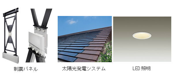 2.制震パネルや太陽光発電システムなどを標準搭載した、「安全・安心」の基本性能 「xevo KⅡ~絆~」では、低価格を実現しながらも耐久性と省エネルギー性に優れた「外張り断熱通気外壁」など「xevo」シリーズの基本性能はそのままに、「長期優良住宅認定制度」においても標準仕様で適合。住宅性能表示制度の耐震等級においても最高等級「3」(※4)を実現しています。 また、地震エネルギーを吸収し、内外装の損傷を大幅に低減する「制震パネル」を標準搭載しました。これにより、建物の変形量を20~50%(※5)低減することができ、吸収したエネルギーは熱として放出されるため、繰り返しの余震にも効果を発揮します。 あわせて、「太陽光発電システム」を標準で約3kW搭載し、「高効率給湯器」も標準採用することにより、政府が定める新省エネ基準による一般住宅と比べ、年間の光熱費とCO2排出量を大幅に削減できます。
