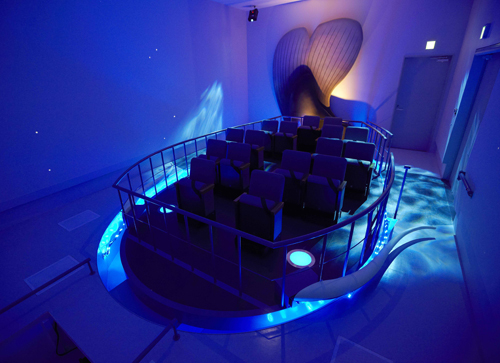 (2)【地震】「なまずシアター」 震源探索艇「なまず號」に乗って、地震発生のメカニズムや世界の震源分布の狀況、地震のプレートの仕組みなどを學ぶことができる、巨大ビジョンと地震體験裝置を備えたアトラクションです。4面スクリーンを見ながら揺れを體感できます。(約10分)