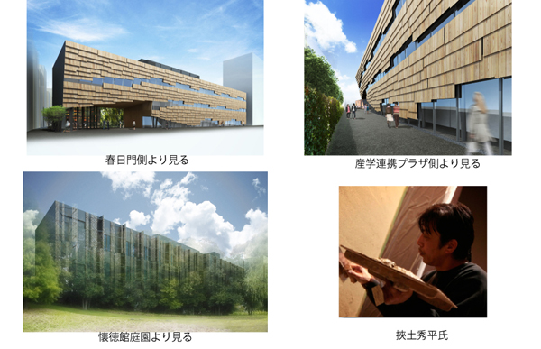 ■建物概要 建物名稱 :「情報學環?Daiwaユビキタス學術研究館(仮稱)」 所 在 地 :東京都文京區本郷7丁目3番1號 敷地面積 :403,516.09㎡ 建築面積 :679.45㎡(205.58坪) 延床面積 :2,709.53㎡(819.82坪) 構 造 :鉄骨造 地下2階地上3階建て 設 計 :隈研吾建築都市設計事務所 施 工 :大和ハウス工業株式會社 著 工 :2012年10月上旬 竣 工 :2014年3月予定 建 設 費 :約11億円 |