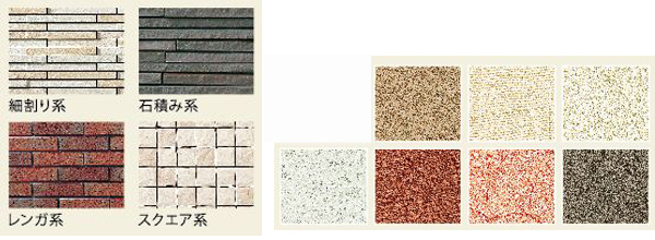 3.外壁にはバリエーション豊富なタイル張りや塗壁を提案 當商品は、外壁にタイル張り(4柄)や塗壁(7柄45色)を提案し、お客さまの幅広い要望にも対応することができます。