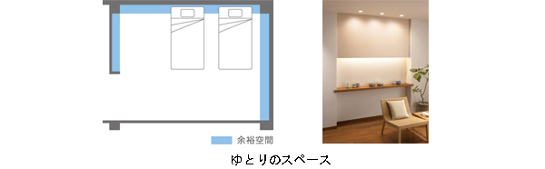 (2)「中も広く」を実現する各階プラス1㎡の有効面積 限られた空間を有効に活用できるよう、壁厚のロスを少なく仕上げることで、一般的な重量鉄骨造と比べ、各階プラス1㎡分の有効面積を実現しました。 延床面積210㎡の5階建で比較すると、表示上は同じ床面積(※3)でも、各階約1㎡分(建物全體で約5㎡分)のゆとりが生まれ、スペースを有効に使うことができます。 ※3.壁の中心線で囲まれた部分の面積。