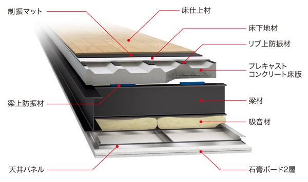 ●子どもの生み育て支援デザイン地域?社會部門 気になる音をブロック「サイレントハイブリッドスラブ50」 「サイレントハイブリッドスラブ50」は、軽量鉄骨造の軀體と高強度プレキャストコンクリート(※2)の床版を組み合わせた新たな高遮音床です。 高強度コンクリート版を採用することにより、木造および軽量鉄骨造の賃貸住宅では、業(yè)界初(※3)となる遮音性能「LH-50」(※4)「LL-40」(※5)を実現したことで、子育て世代も、子どもの飛び跳ねや物の落下音などを気にせず、安心して生活することができます。 ※2.設計基準強度 60N/mm2 ※3.當社調べ。 ※4.Level,Heavy-Weight(重量衝撃音)子どもの飛び跳ねなどの重量床衝撃音に対する遮斷性能。 ※5.Level,Light-Weight(軽量衝撃音)食器の落下音などの軽量床衝撃音に対する遮斷性能。 【※3?※4ともに數値が低いほど、衝撃音の聞こえ方は小さくなります。數値が10下がれば、聞こえ方は約半分になります。】