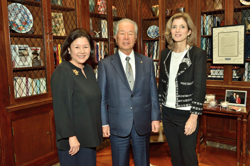 11月13日、ケネディ駐日米國大使公邸にて 右:キャロライン?B?ケネディ 駐日米國大使 中:樋口武男 大和ハウス工業株式會社代表取締役會長 左:アイリーン?ヒラノ?イノウエ 米日カウンシル會長 |