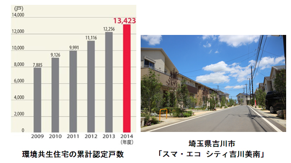 當社では、「環境共生住宅」を低炭素社會とサスティナブル社會を先導する住宅として位置づけ、自然環境との共創共生を図る「自然と調和した街づくり」を進めるなかで、その進捗を測る指標として環境共生住宅認定の実績數を活用してきました。 昨年度は、埼玉県吉川市「SMA×ECO CITY(スマ?エコ シティ)吉川美南」など、全國約半數の分譲戸建住宅が環境共生住宅認定を受けた結果、建設実績の総合1位を達成することができました。 當社は、分譲戸建住宅の全てが「環境共生住宅認定」となるよう一層の普及を目指します。 ※環境共生住宅:人と住まいをとりまく[環境]をより良いものにしていくために、「地球環境を保全する」「周辺環境に親しむ」「健康で快適な居住環境」という3つの考え方に基づいた住まい作りのことで、一般財団法人建築環境?省エネルギー機構が認定するもの。 ※當社の建設実績は、売上実績を基準として集計しています。