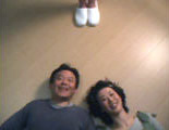 夫婦で床に寢転んでいる近藤さん夫婦。 「床もいいですよ~」 |
