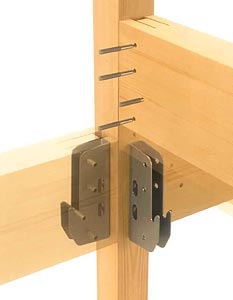 従來、柱と梁などの接合部(仕口)では、プレカット加工によって構造材を凹凸にカットし、一方を片方に差し込み、補助金物で強度を確保していました。それに対し「ディーコムス接合」では、構造用部材として開発した高性能の構造金物で柱?梁を接合、従來と比較して接合部の強度を2倍(當社比)としました。また、構造體の各接合部について、より高精度の構造計算を可能とし、設計上の無駄を排除しました。さらに、構造に対する信頼感を高めるために、各邸別毎に構造計算を行うことも可能としました。 |