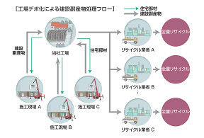 生産工場におけるゼロエミッションだけでなく、全國に點在する多數の施工現場でもゼロエミッションを達成すべく、「建設副産物工場デポ化プロジェクト」※を推進しています。