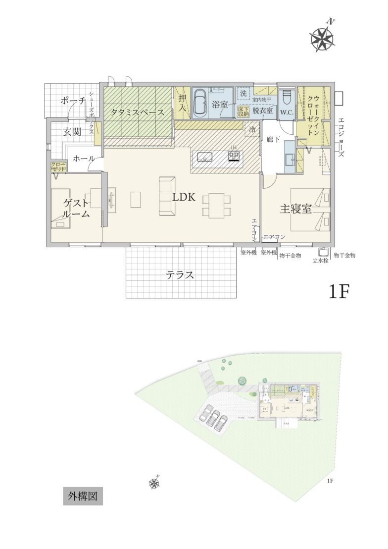 南面に開放的なお庭を設けた広大な敷地※間取?外構植栽図は設計図書を基に描き起こしたもので実際とは多少異なる場合があります。車?家具?家電?備品等は価格に含まれません。
