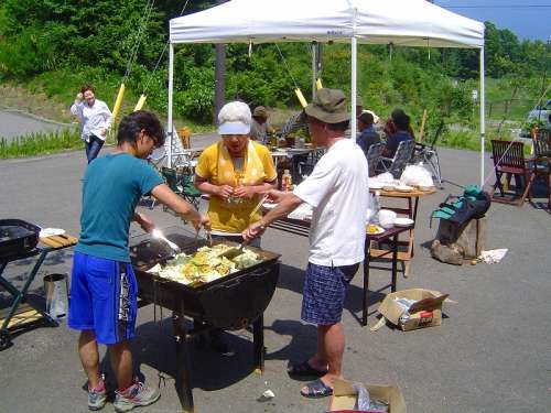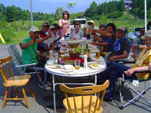 皆さんこんにちは、豬苗代ヒルズホームページ擔當のヨコオです 毎日暑い日が続き、ニュースでは熱中癥という言葉を頻繁に耳にするようになりました。 私はここ豬苗代ヒルズと、裏磐梯にある裏磐梯リゾートの擔當をしています。 週末は分譲地でお客様がいらっしゃるのを待っているわけですが、炎天下のアスファルトの上は 暑い?。ㄈ贞帳悉趣皮鉀訾筏ぃ?br /> 熱中癥にはなりたくない!と、意気込んで水分補給、そして水分補給、たまに塩アメ! 水分の取りすぎでお腹を調子があまりよくありません が!そんな私が元気をもらった一大イベント?があったのです。 7月28日、オーナー様による焼肉大會バーベキュー大會開催しました 急遽決まったオーナー會のようなもので、あまりに急すぎて數日前にいらっし ゃる方に聲を掛けさせていただき、24名のオーナー様に集まっていただきました! 食材や調味料、椅子やテーブルまで、私たちとオーナー様とみんなで持ち寄り とても盛り上がりました 午前11:00 ビールで乾杯 楽しい會話と食事で暑さも吹っ飛びます