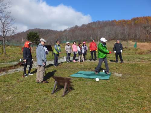 午前中は、裏磐梯のグランデコスノーリゾートにてパークゴルフ大會を開催し、雪化粧をした中吾妻山をバックに白熱した競技が繰り広げられました。