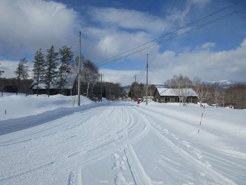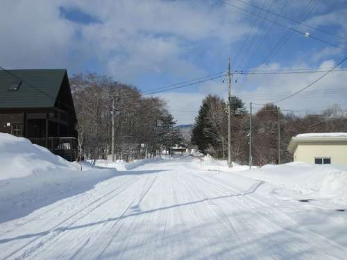 令和7年2月21日 9時頃撮影 ロイヤルシティ八幡平リゾート現地事務所付近の積雪狀況をお屆けいたします。 ※事務所敷地內の積雪は、現在約50〜55cmとなっております。 ■現地事務所付近 ■分譲地入口付近 ■E街區 ■現地事務所前道路