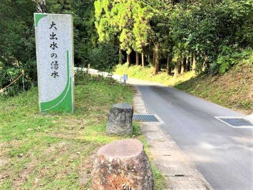 【大出水の湧水】の石の標識が迎えて