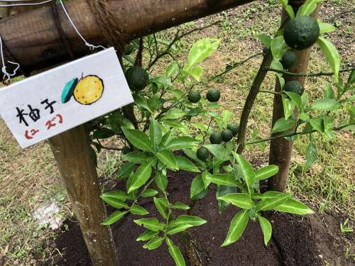皆さん、こんにちは 令和5年3月、ロイヤルシティ霧島妙見臺の現地案內所の前の広場で 柚子の植樹祭が行われ、オーナー様と一緒に2mぐらいの柚子の苗木を 植樹しましたが、7月に入り卓球のピンポン玉くらいの大きさの実を たくさんつけました。 こんなに早く実を付けると思わなかったのでびっくりです。 ただし、幼少の木は養分をいきわたらせ、大きく成長させる為に、 実を取るようにとWEBに書かれていました。 もったいないけど、取るようにしたいと思いますが本當に大丈夫かな? 次回のブログでどうなったかお知らせしたいと思います。 ■上記寫真はすべて令和5年7月撮影 ■ロイヤルシティ霧島妙見臺內
