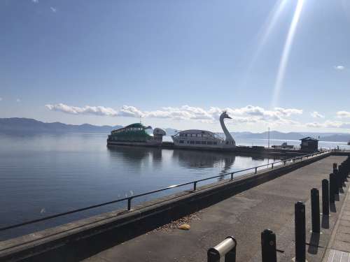 遊覧船も靜かに佇(たたず)んでます。