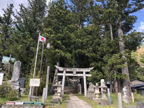 田村郡小野町の「諏訪神社」に到著すると、早速「爺(じじ)杉」「媼(ばば)杉」と