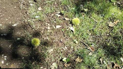 <臺風の影響もあって、栗もだいぶ落ち始めています(8月17日撮影)>