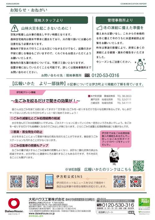 「コミュニケーションレポート2023年11月12月」號は當森林住宅地內ゴミ庫掲示板