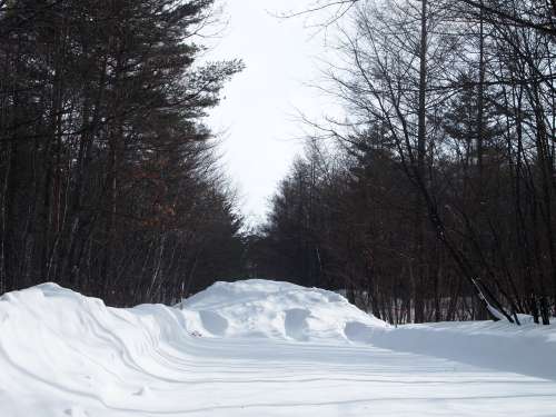 その向こうで雪合戦しながらキャアキャア帰っていく子どもたち。