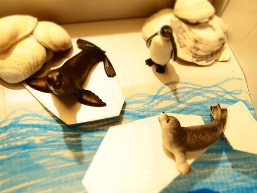 貝殻をお土産にいただいたら、早速ジオラマづくりが始まりました。