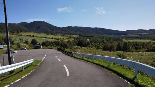 しばらく走っていくと、畑や牧草地などが現れ、視界が開けてきます。すでにカルデラの中に入っているようです。見晴らしの良いところまできて寫真を撮りました。