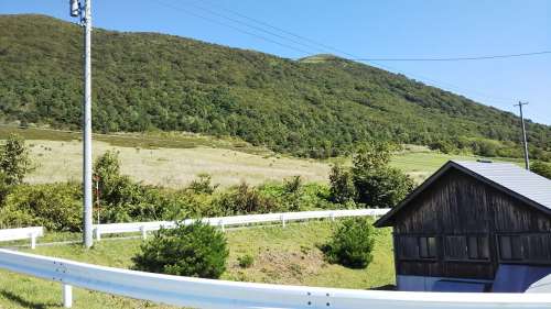 阿蘇山のような大規模なものではないですが、しっかりと內輪山と外輪山が見えます。七時雨山という名前は、日に何度も天気が変わることから名づけられたそうなのですが、今日は快晴のままで気分爽快です。このままカルデララインを進んで安代の街を経由して帰ります。七時雨山から安代への下り道では、こちらに來てから初めて見る規模の杉林が広がっていました。