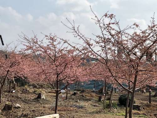 大山リゾート近くの「河津桜の丘」の河津桜が